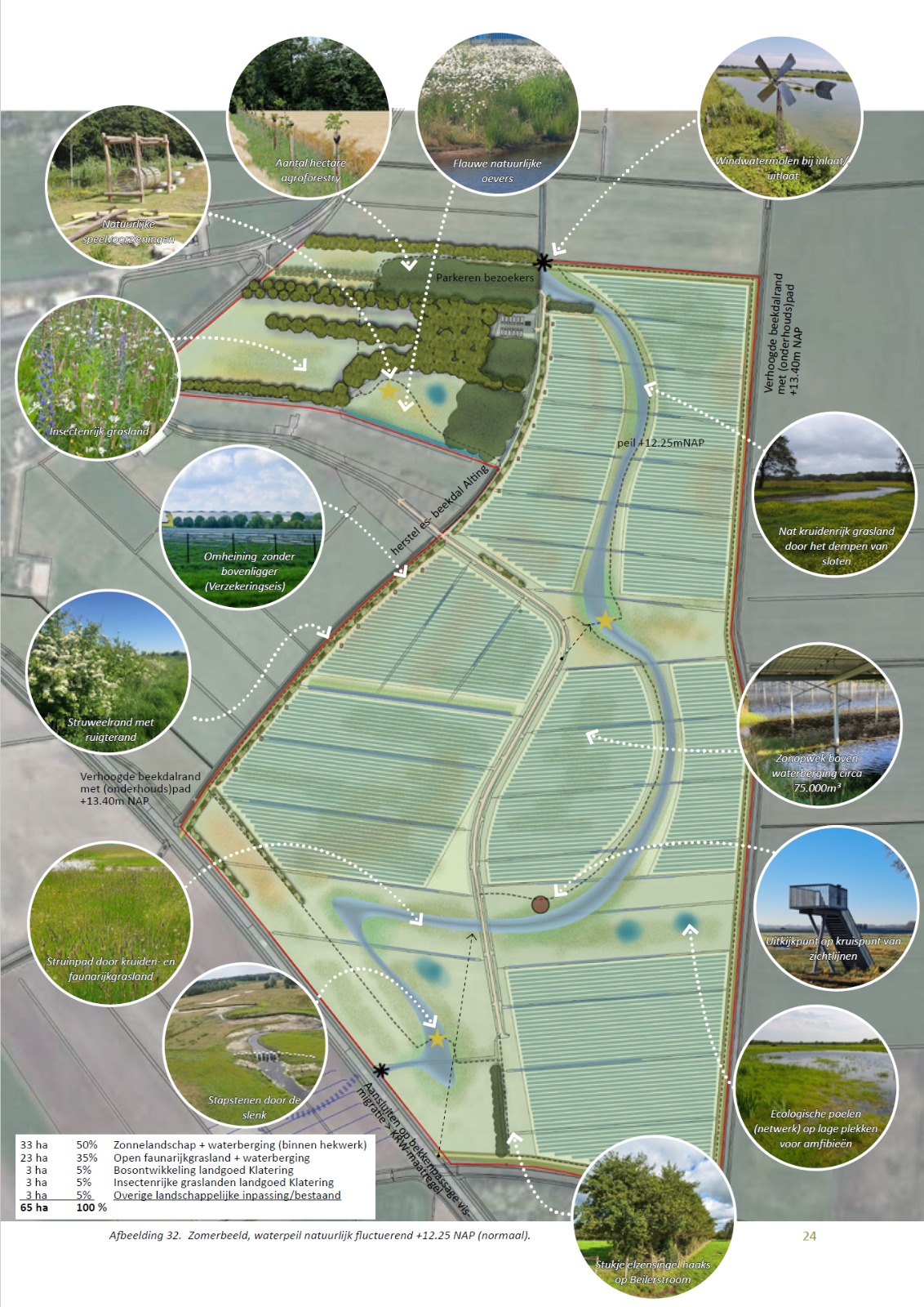 • Daarnaast wordt ruim 32 hectare ingericht als open, faunarijk grasland en wordt het beekdallandschap hersteld, waardoor de biodiversiteit toeneemt.